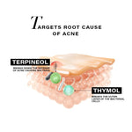 TT2 technology utilizes Thymol and Terpineol to specifically target and eliminate acne-causing bacteria.